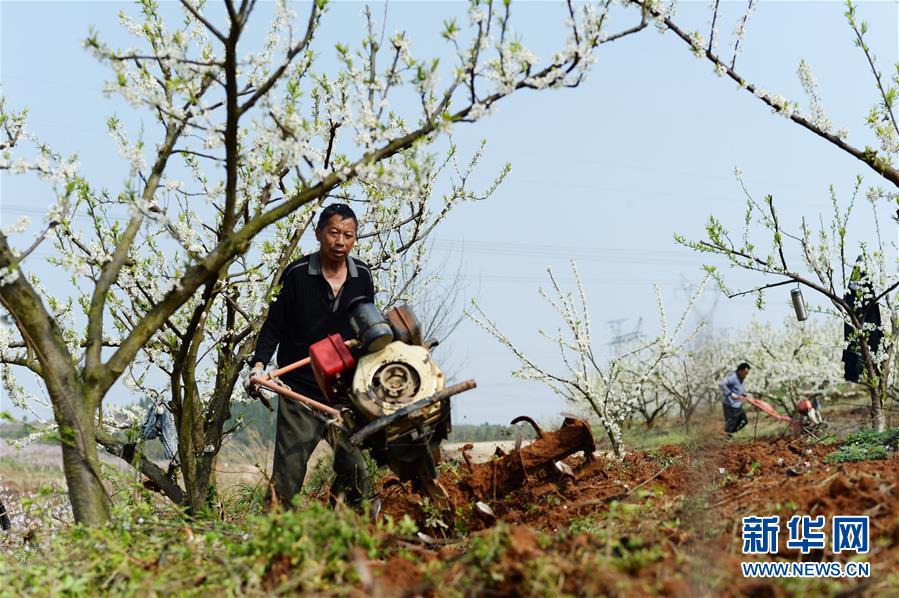 3月21日,在贵州省铜仁市玉屏侗族自治县朱家场镇混寨村黄金李基地,村民在翻地。当日是二十四节气中的春分,全国多地农业生产进入春季繁忙时节。 新华社记者杨楹摄