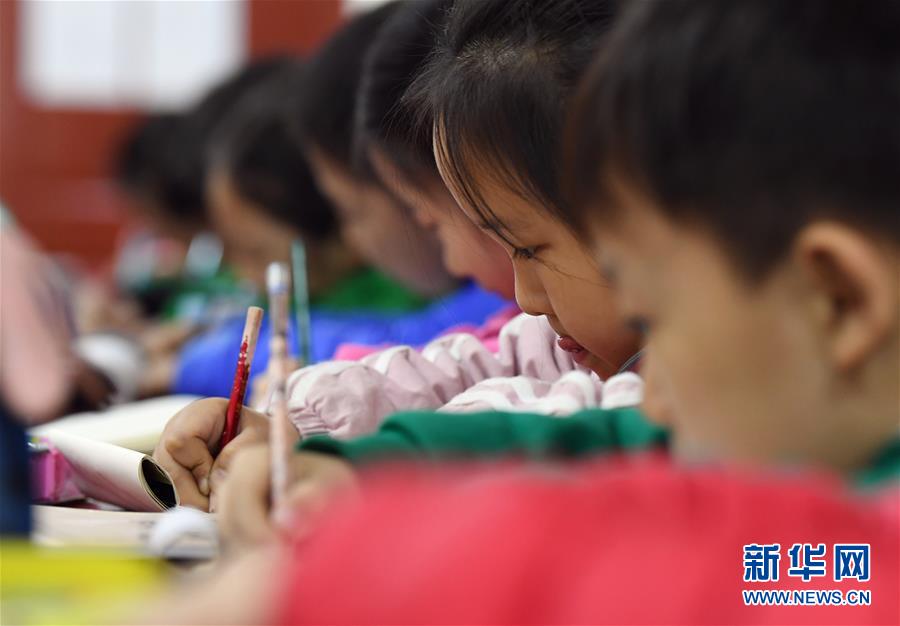 3月21日,西安市莲湖区劳动一坊社区,学生们在练习硬笔书法。 陕西省西安市莲湖区劳动一坊社区为解决小学生放学后无人看管问题,自2017年起成立“四点半课堂”,通过政府购买服务的方式,在下午四点半到六点之间免费为小学生提供书法、英语等培训,受到家长和学生们的欢迎。 新华社记者 张博文 摄