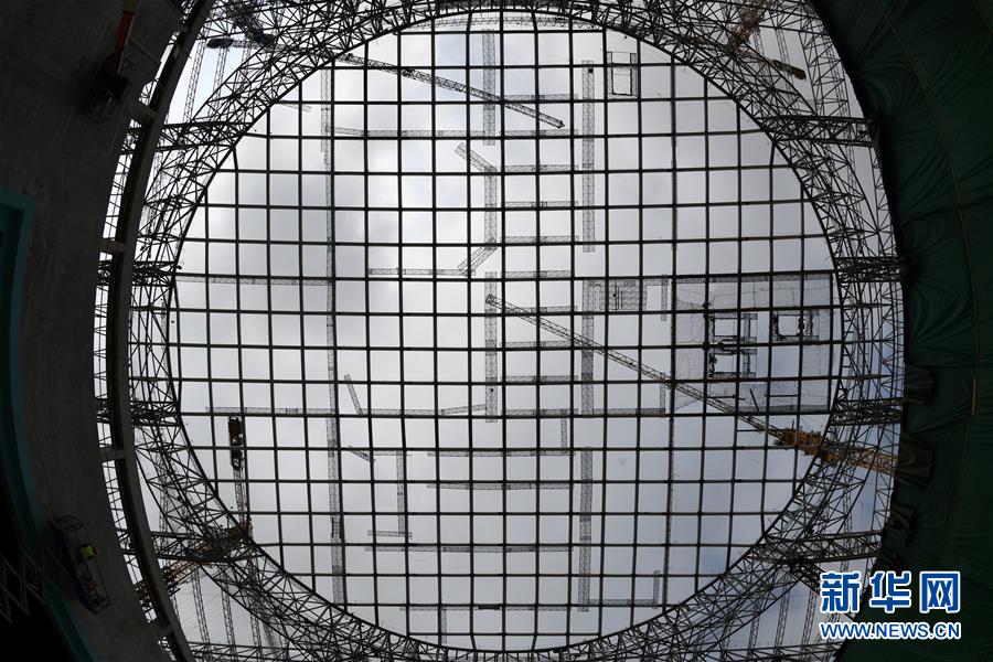 施工中的珠海长隆海洋科学馆钢屋盖(3月21日摄)。 近日,由中建三局一公司承建的珠海长隆海洋科学馆现已进入装饰装修阶段,预计于年内完工。项目总建筑面积约40万平方米,集动物展览、动物生活环境展示、动物科普教育、珍稀动物繁育等功能于一体。 新华社记者 梁旭 摄