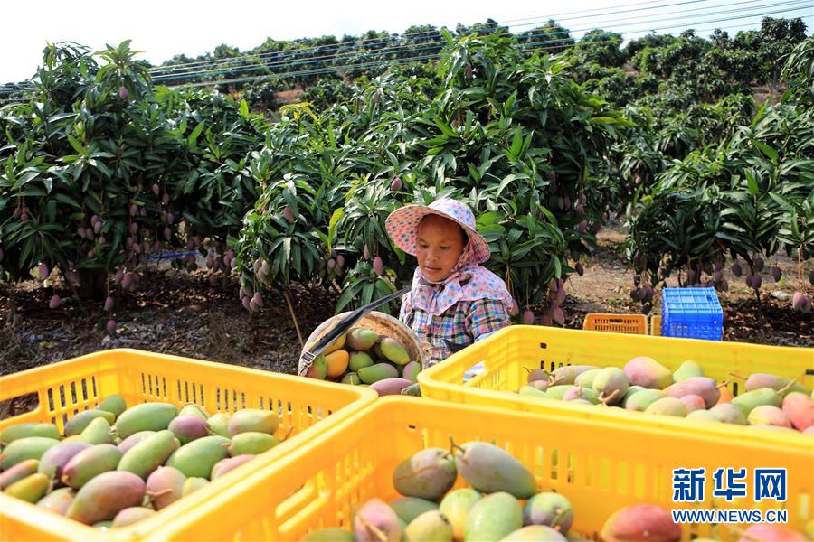 3月21日,在海南省三亚市崖州区福返芒果种植基地,农民将采摘的贵妃芒果装箱。 眼下是海南三亚芒果的采摘上市高峰期,芒果种植基地内一片丰收景象。近年来,三亚市利用独特的地理位置和优越的生长环境,大力扶持发展以三亚芒果为代表的热带特色高效农业。2018年全市芒果种植面积近38万亩,产量约65万吨,产值近50亿元。 新华社记者 隋先凯 摄