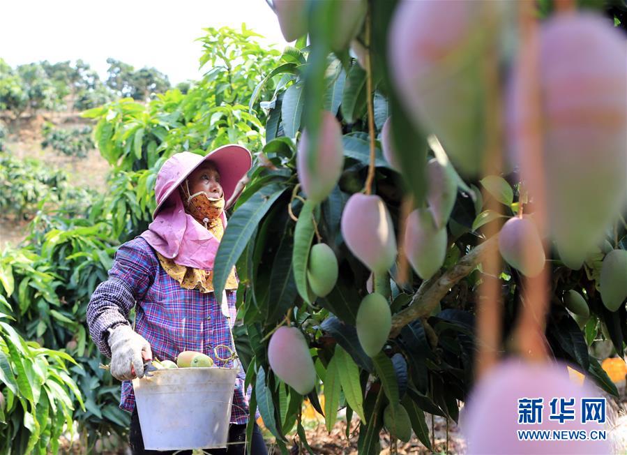 3月21日,在海南省三亚市崖州区福返芒果种植基地,农民在采摘成熟的贵妃芒果。 眼下是海南三亚芒果的采摘上市高峰期,芒果种植基地内一片丰收景象。近年来,三亚市利用独特的地理位置和优越的生长环境,大力扶持发展以三亚芒果为代表的热带特色高效农业。2018年全市芒果种植面积近38万亩,产量约65万吨,产值近50亿元。 新华社记者 隋先凯 摄