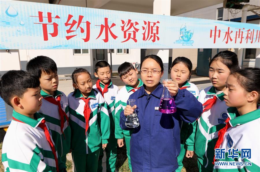 3月22日,在河北省香河县机器人小镇污水处理厂,工作人员向学生们讲解污水处理知识。当日是世界水日,各地学校举办形式多样的主题活动,帮助孩子们从小树立爱护环境、节约用水的意识。 新华社记者王晓摄