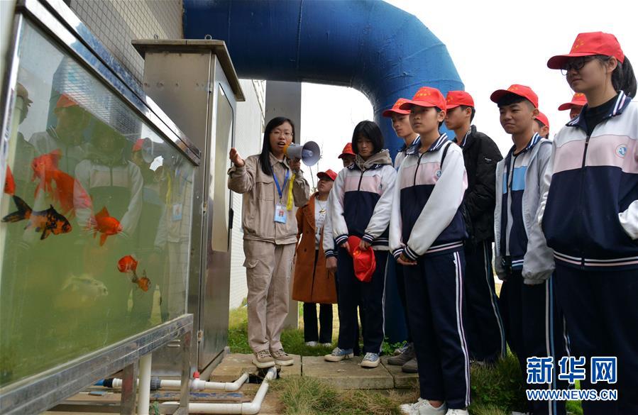 3月22日,在福建省泉州市泉港区第二自来水厂,工作人员给学生们介绍生态观察池的水质监测情况。当日是世界水日,各地学校举办形式多样的主题活动,帮助孩子们从小树立爱护环境、节约用水的意识。 新华社发(林弘梫 摄)