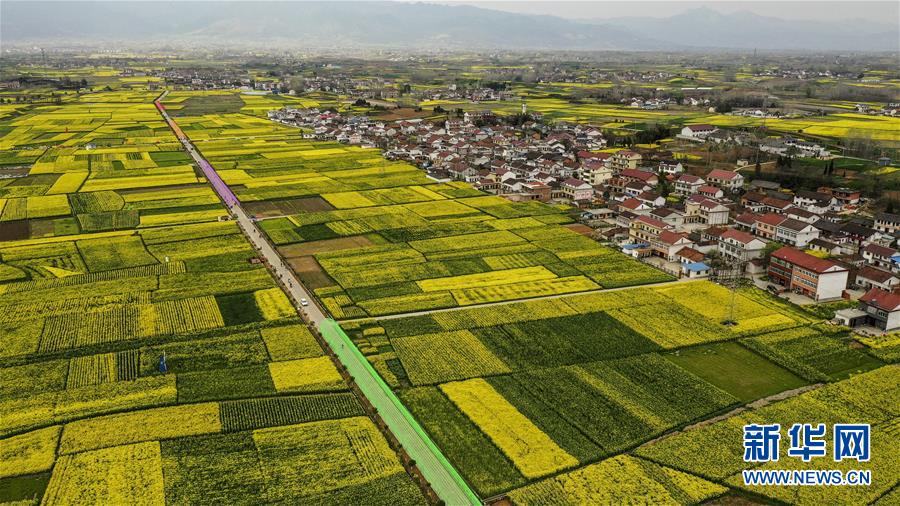 这是汉中市汉台区老君镇王道池村的油菜花海(3月22日无人机拍摄)。近日,陕西省汉中盆地的油菜花盛开,美不胜收。 新华社记者 陶明 摄