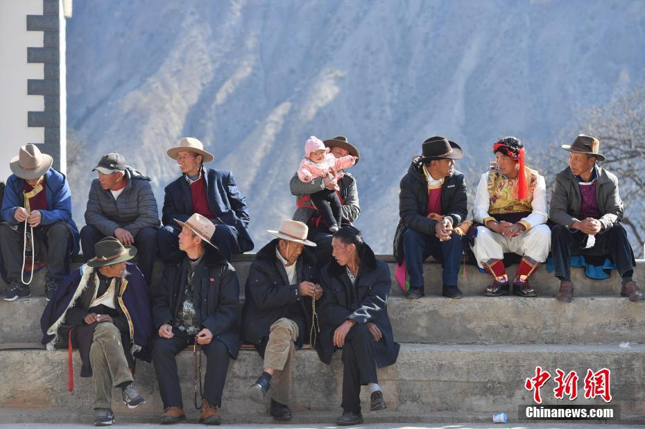 3月22日,村民等待庆祝活动开始。当日,云南省迪庆藏族自治州德钦县云岭乡西当村的民众身着节日盛装,载歌载舞,欢庆“舒古尼苏”节。每年藏历二月十五至二十,西当村都会迎来他们独有的传统节日“舒古尼苏”节。“舒古尼苏”是一个有关农耕和栎树的节日。舒古,藏语意为栎树;尼苏,即歇息、休养。藏历节过后,正是积肥的大好时机,村民们从山上砍来栎树的枝叶,变成了优质的农家肥。因此,舒古尼苏既是积肥之后的一次歇息,也是栎树休养时光的开始。 中新社记者 刘冉阳 摄