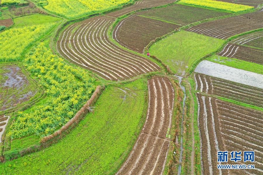 3月22日,在湖南省永州市道县营江街道上汶村,村民在田地里忙碌。 潇湘大地回暖,农民抢抓农时春耕春种,乡村处处呈现忙碌景象。 新华社发(何红福 摄)