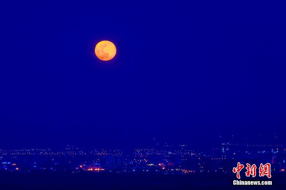 新疆克拉玛依市“超级月亮”点亮夜空