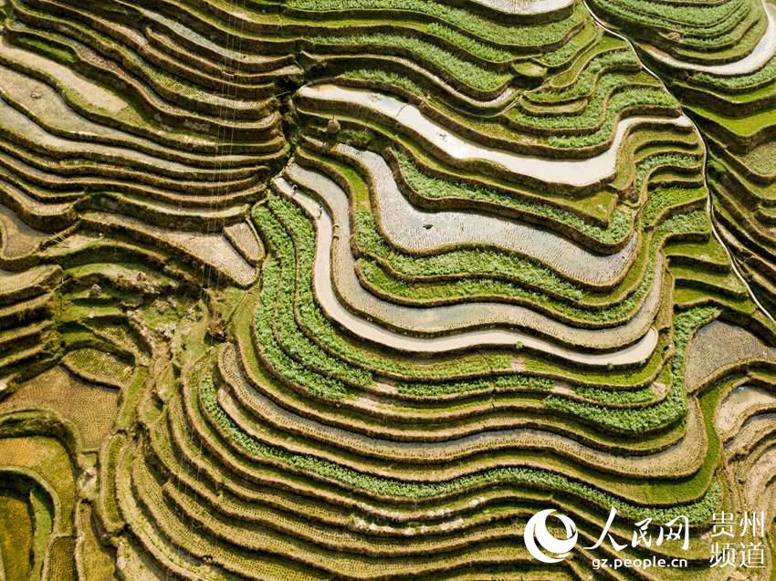 2019年3月22日,在贵州省黔东南苗族侗族自治州从江县拍摄的加榜梯田景色(无人机拍摄)。(吴德军摄)