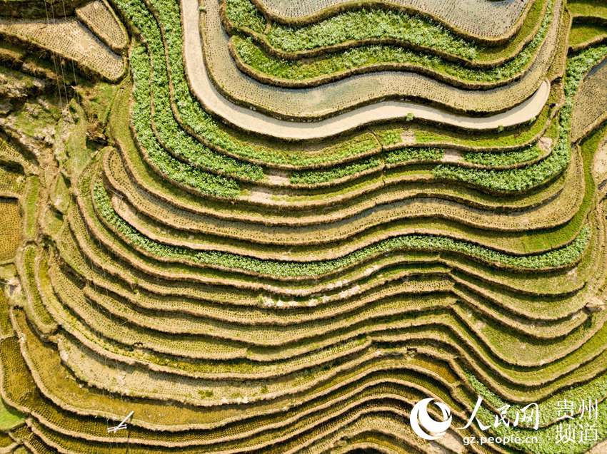 2019年3月22日,在贵州省黔东南苗族侗族自治州从江县拍摄的加榜梯田景色(无人机拍摄)。(吴德军摄)