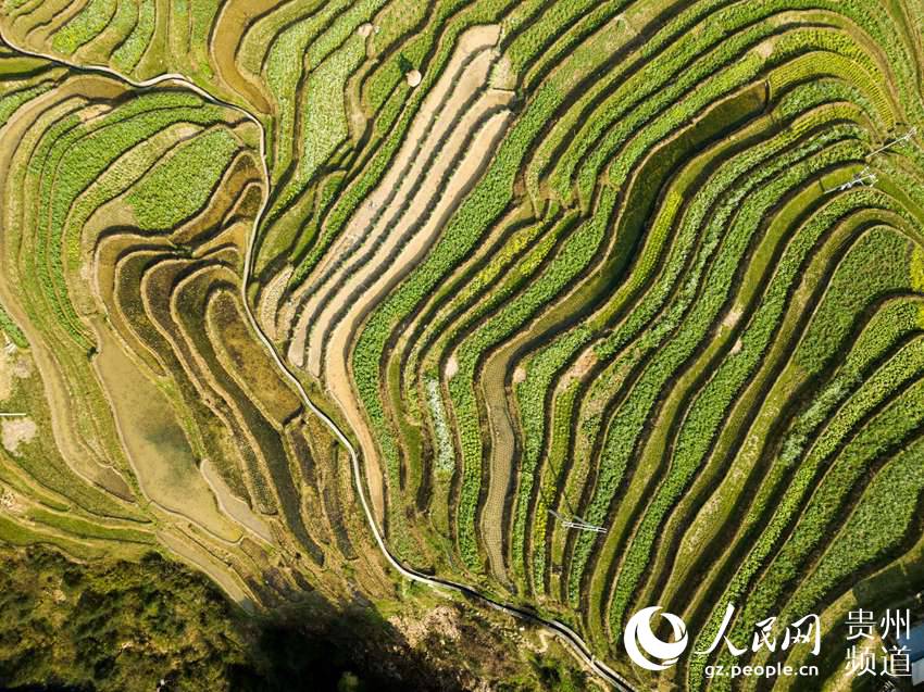 2019年3月22日,在贵州省黔东南苗族侗族自治州从江县拍摄的加榜梯田景色(无人机拍摄)。(吴德军摄)