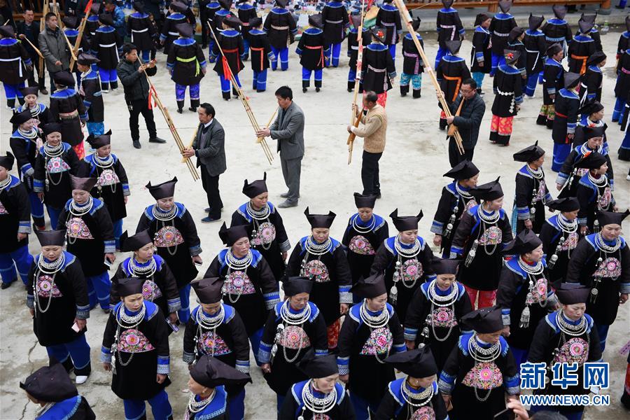 3月23日,群众在跳芦笙舞。 连日来,在贵州省剑河县岑松镇岑松社区对门寨,来自周边村寨的少数民族群众欢聚一堂,通过跳芦笙舞、对情歌、唱苗族古歌等方式,欢度民族芦笙歌舞文化节。 新华社记者 杨文斌 摄