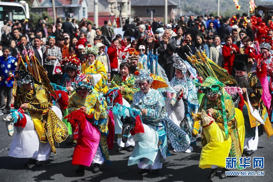 3月23日,身着传统服饰的演员在表演“新登竹马”。新华社记者 徐昱 摄