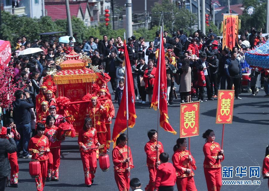3月23日,演员在表演传统迎亲。新华社记者 徐昱 摄