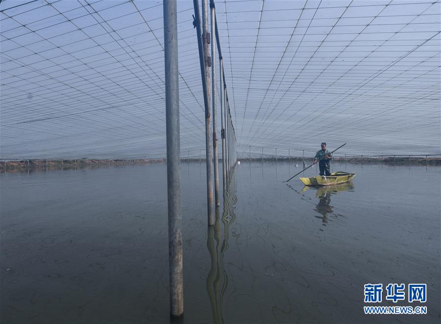 3月24日,东林镇保健村湖旺水产育苗基地的工作人员在种鱼养殖大棚内查看种鱼的生长情况。进入3月下旬,浙江省湖州市吴兴区东林镇迎来了淡水鱼鱼苗销售的旺季。2014年东林镇对污染较大的温室龟鳖养殖开始整治工作,原来的龟鳖养殖户开始从事淡水鱼水产养殖业,目前东林镇淡水鱼的养殖面积已达3万亩。其中保健村的湖旺水产育苗基地是浙北地区最大的特种水产苗种繁殖基地,现有600多亩鱼塘,室内育苗车间500立方米,年产各类鱼苗10亿尾,鱼苗日销售量达5000万尾。 新华社记者徐昱摄