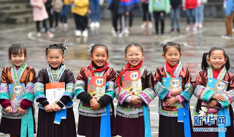 融水苗族自治县杆洞乡中心校的孩子们在合影(3月14日摄)。 新华社记者 黄孝邦 摄