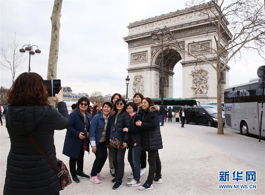 这是2019年3月20日,几名中国游客在法国巴黎凯旋门前合影留念。中国和法国,作为东西方两个古老而独特文明的代表,长久以来相互吸引、相互关注、相互理解,双方友谊源远流长。中法建交55年来,两国坚持相互尊重、求同存异、互利共赢,给两国和两国人民带来了实实在在的福祉。中法关系定位从全面伙伴关系到全面战略伙伴关系,再到共同开创紧密持久的全面战略伙伴关系新时代,始终走在中西方关系前列。展望未来,中法将以建交55周年为契机,不断提升紧密持久的中法全面战略伙伴关系水平,为促进世界和平、稳定、发展作出更大贡献。 新华社记者高静摄