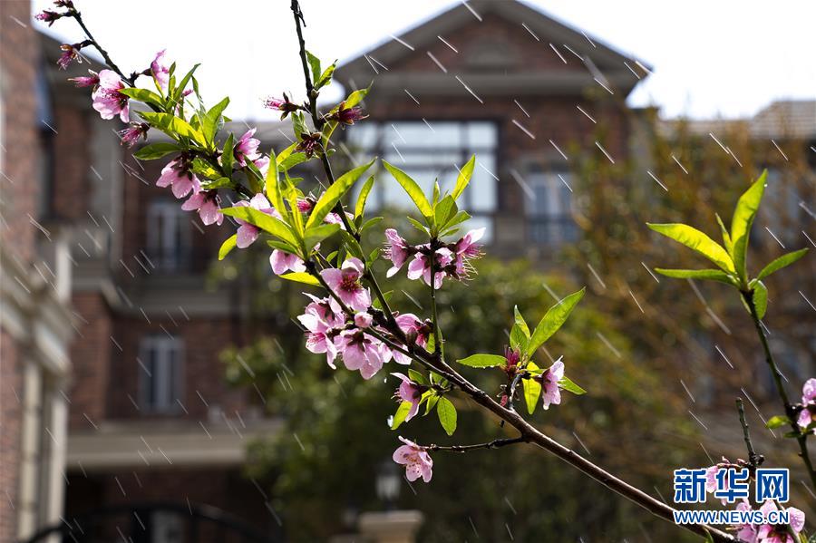 3月23日,上海松江区一居民小区里盛开的桃花。随着春天到来,上海处处生机盎然,千花百卉争明媚。 新华社记者 张建松 摄