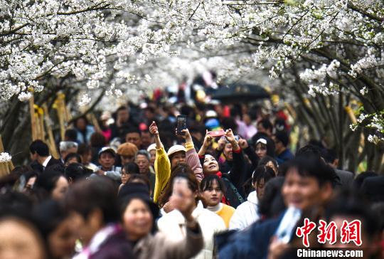 南昌县凤凰沟景区樱花盛开,吸引众多游客前来踏青赏花,享受美好春光。 鲍赣生 摄
