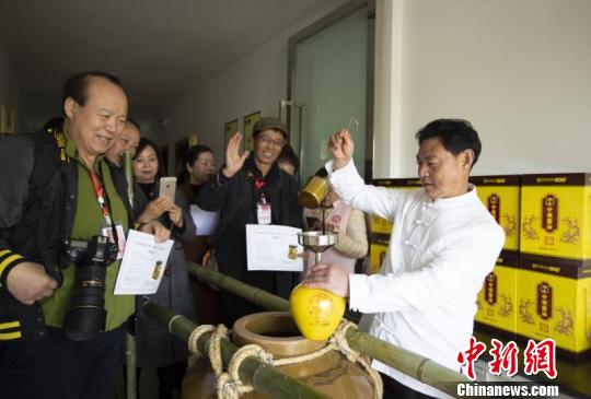 来自各地游客争相品赏新年开坛的第一坛酱油。 杜思慧 摄