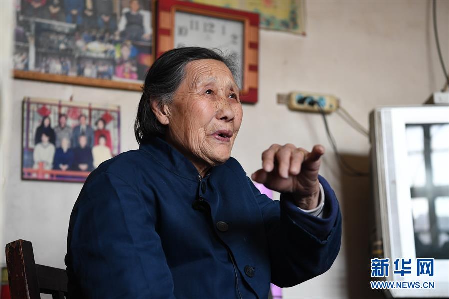 河北省唐县淑吕村95岁村民葛贵多在讲述70年前的场景(3月7日摄)。新华社记者牟宇摄
