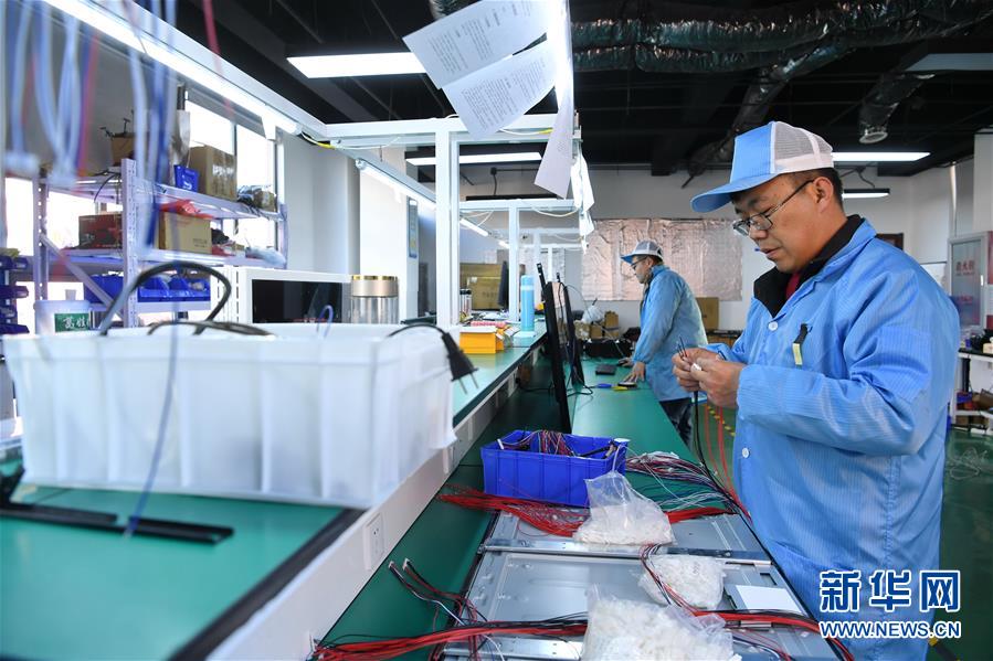 在保定涿州·中关村和谷创新产业园,范宏浩团队的工作人员在组装电子产品(3月12日摄)。 新华社记者牟宇摄