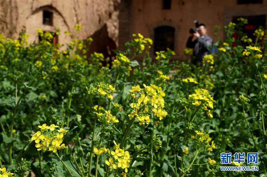 在洛宁县罗岭乡花树凹村“爱和小镇”内,一名游客在拍摄油菜花(3月25日摄)。 新华社记者李安摄