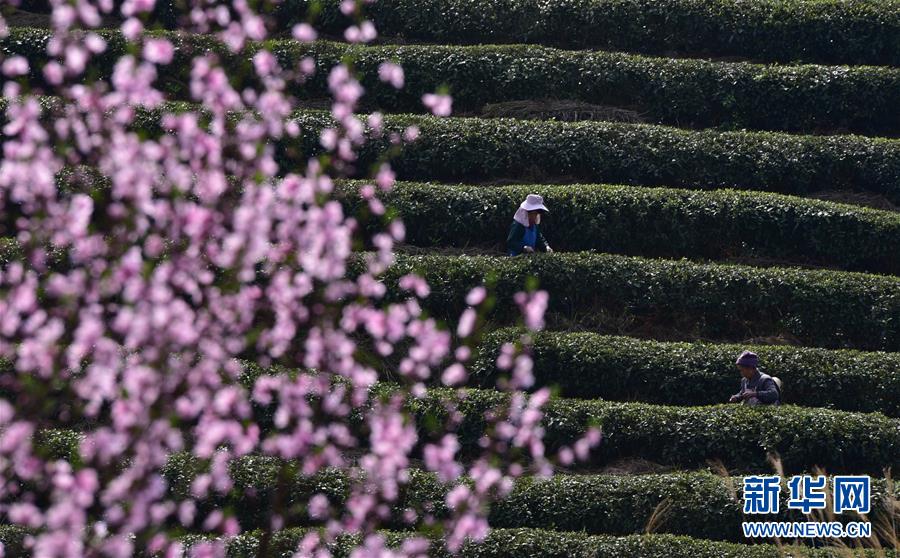 3月25日,采茶工在贵州省黔东南苗族侗族自治州丹寨县龙泉镇马寨村茶园里采摘春茶。 新华社发(杨武魁 摄)