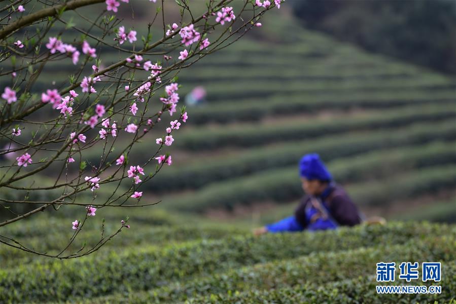 3月25日,采茶工在贵州省黔东南苗族侗族自治州丹寨县龙泉镇马寨村茶园里采摘春茶。 新华社发(杨武魁 摄)