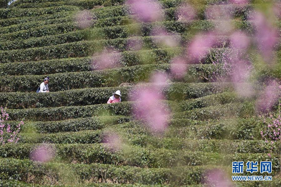 3月25日,采茶工在贵州省黔东南苗族侗族自治州丹寨县龙泉镇马寨村茶园里采摘春茶。 新华社发(凯尚宇 摄)