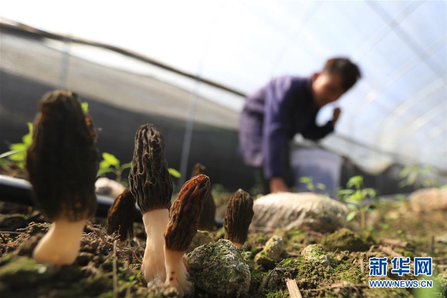 3月25日,湖南省湘西土家族苗族自治州龙山县苗儿滩镇农民在大棚里采摘羊肚菌。 新华社发(曾祥辉 摄)
