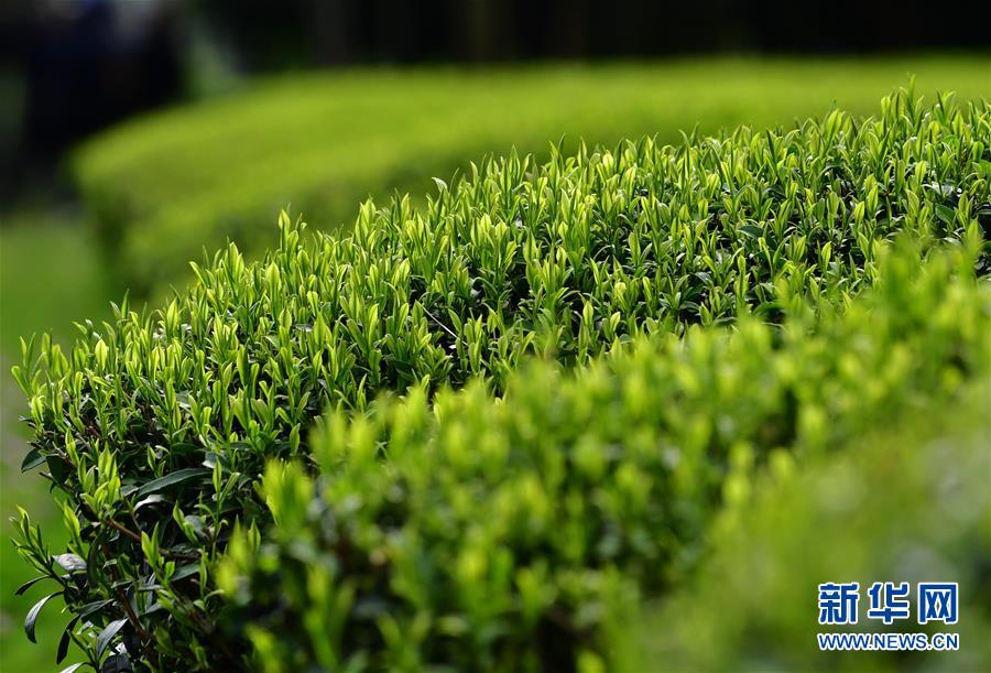 武夷山星村镇生态茶园里茶树长出嫩芽(3月26日摄)。 春分过后,柳绿花红。福建武夷山的十多万亩茶山青翠欲滴,一派生机勃勃的景象。再过一个月,将迎来繁忙的春茶采摘加工期。 新华社记者魏培全摄