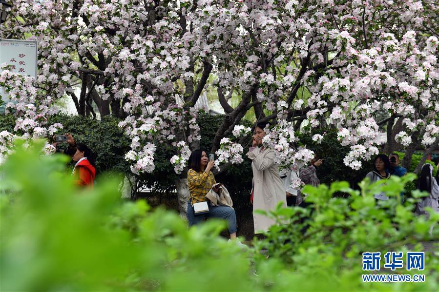 3月26日,在济南五龙潭公园,市民在赏花。近日,泉城济南春花盛开,吸引众多市民到公园里赏花踏春,乐享好春光。 新华社记者 郭绪雷 摄