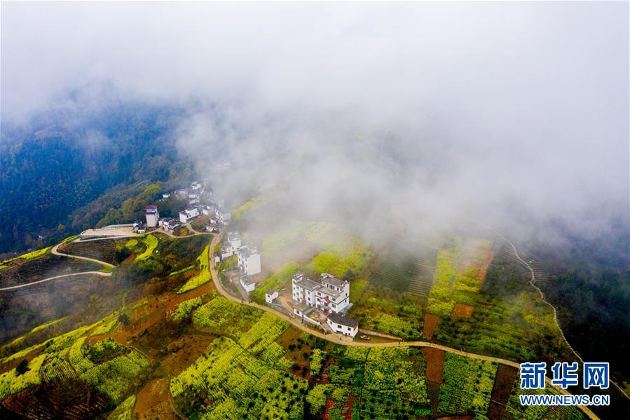 在安徽省黄山歙县拍摄的田园春色(3月25日无人机拍摄)。 新华社发(王文 摄)