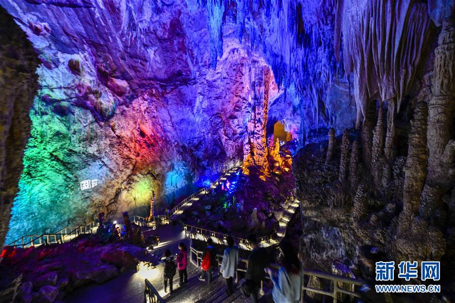 游客在重庆武隆芙蓉洞内游览(3月26日摄)。随着天气转暖,重庆武隆芙蓉洞旅游逐渐升温。重庆市武隆区的芙蓉洞2007年入选世界自然遗产地,同时也是中国国家5A级旅游景区,还被《中国国家地理》评选为中国最美洞穴之一。 新华社记者 刘潺 摄