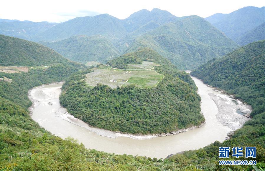 西藏墨脱县雅鲁藏布江果果塘大拐弯(2018年5月6日摄)。 当前西藏高原各类生态系统结构整体稳定,气、声、水、土壤、辐射及生态环境质量均保持在良好状态,大部分区域仍处于原生状态,西藏仍然是世界上生态环境最好的地区之一。 新华社记者 晋美多吉 摄