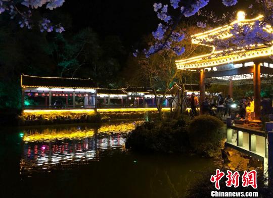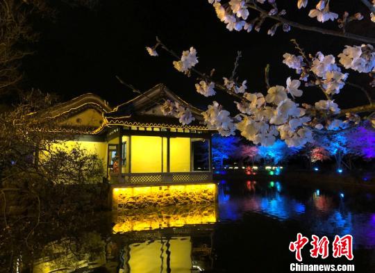 兰亭楼阁与夜樱“相得益彰”。 孙权 摄