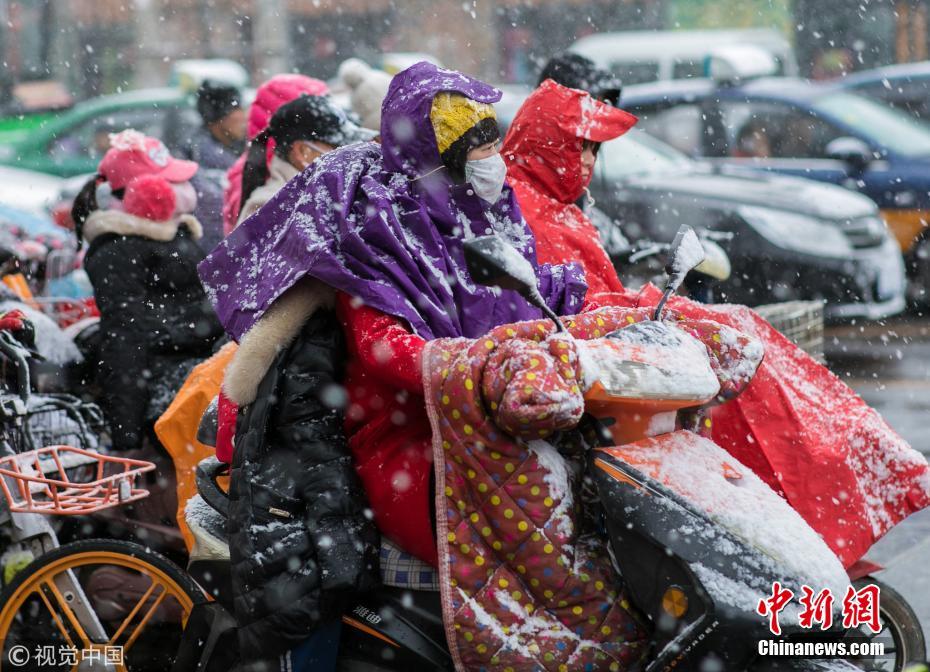 2019年3月28日,受冷空气影响,呼和浩特市出现大风降温、雨夹雪、小雨天气。在呼和浩特市玉泉区石羊桥路,行人冒雪出行。 图片来源:视觉中国
