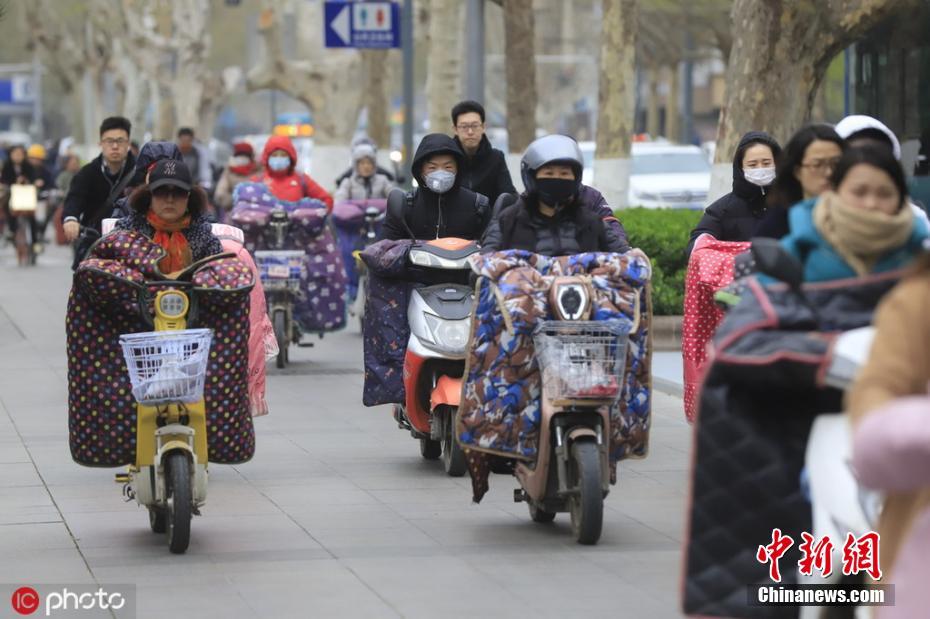2019年3月28日,在山东济南泉城路上,不少上班族穿裹冬日羽绒服全副武装出行。当日,最低气温降至5℃,相比27日的气温如同过山车一般,跌了10℃左右,一夜之间由夏日秒变冬日。 图片来源:东方IC 版权作品 请勿转载
