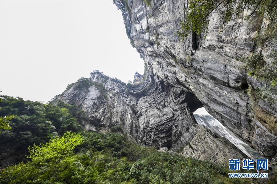 这是在天生三桥景区拍摄的神鹰天坑景观(3月27日摄)。 随着天气转暖,重庆武隆天生三桥景区风景如画,气势磅礴的天生石桥和绿意盎然的山林相映成趣,吸引众多游客前来踏春赏景。 新华社记者刘潺摄