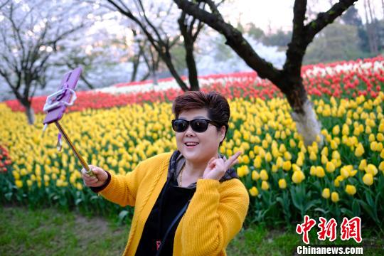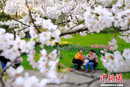 早春时节,浙江杭州西湖边的樱花、郁金香等争相绽放,引众多市民、游客踏春赏花徜徉花海。