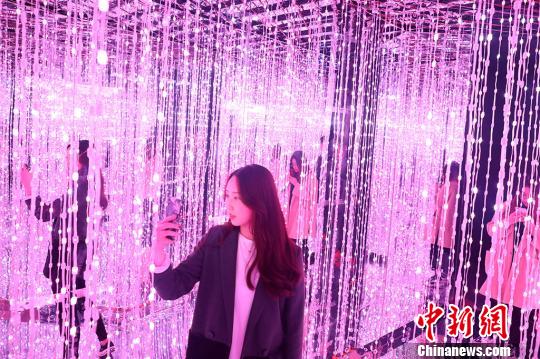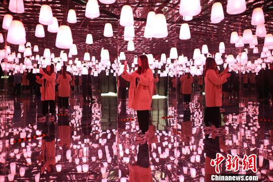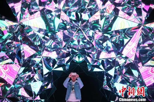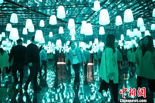 3月27日,江苏常州太湖湾嬉戏谷内,由呼吸森林、黑暗空间、浪漫星睛、钻石隧道四部分组成的“穿越幻境”精彩亮相,360度的镜像、空灵的配乐、高低错落凌空悬挂的灯盏……给游人带来梦幻般的感受。