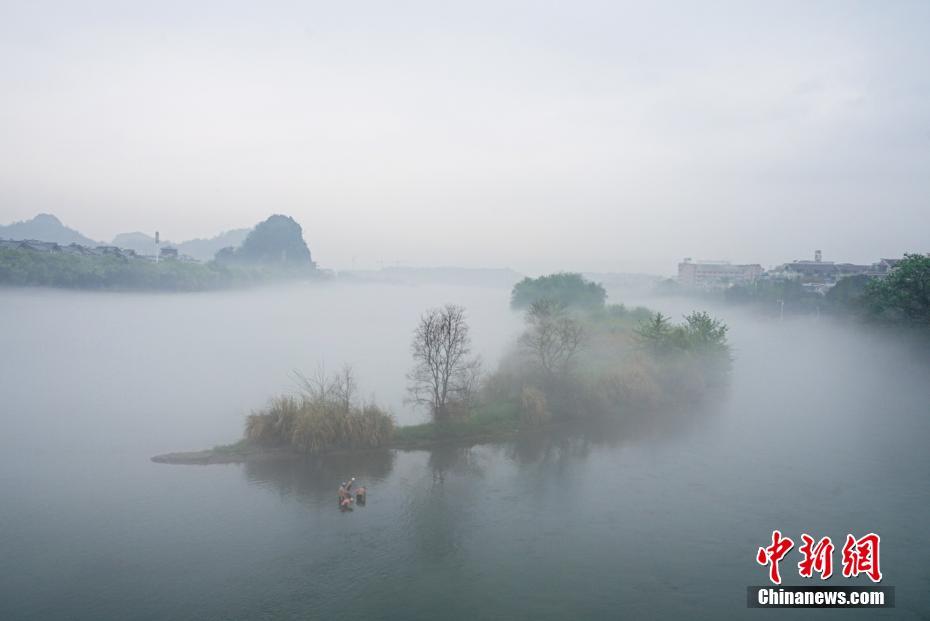 3月28日,桂林市区烟雨漓江美景。 唐梦宪 摄
