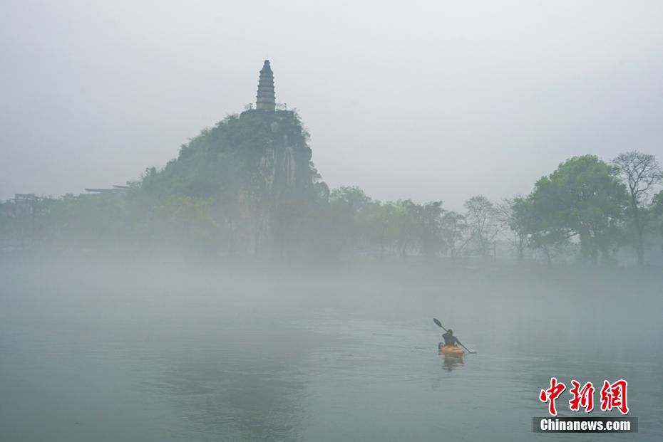 3月28日,平流雾中的桂林老八景“塔山”。 唐梦宪 摄