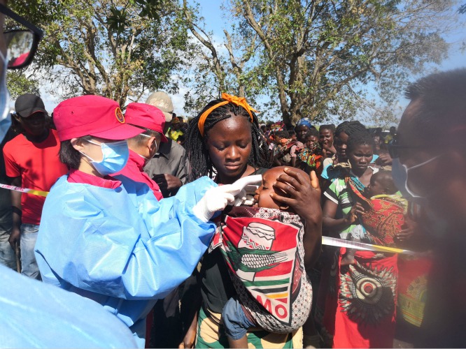 中国救援队在灾民点进行医疗救助(图片由应急管理部提供)