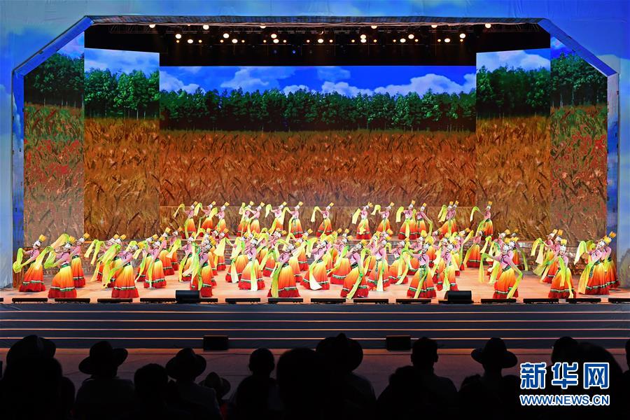3月28日,演员在表演歌舞《雪山春暖》。 当日,纪念西藏民主改革60周年主题晚会——《共产党来了苦变甜》在拉萨市群众文化体育中心举行。 新华社记者 李鑫 摄