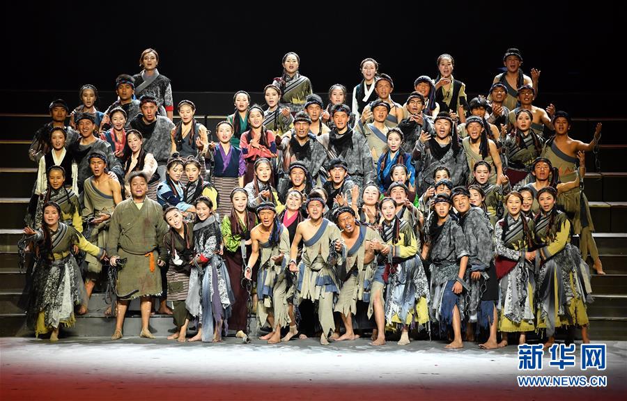 3月28日,演员在表演舞蹈《共产党来了苦变甜》。 当日,纪念西藏民主改革60周年主题晚会——《共产党来了苦变甜》在拉萨市群众文化体育中心举行。 新华社记者 李鑫 摄