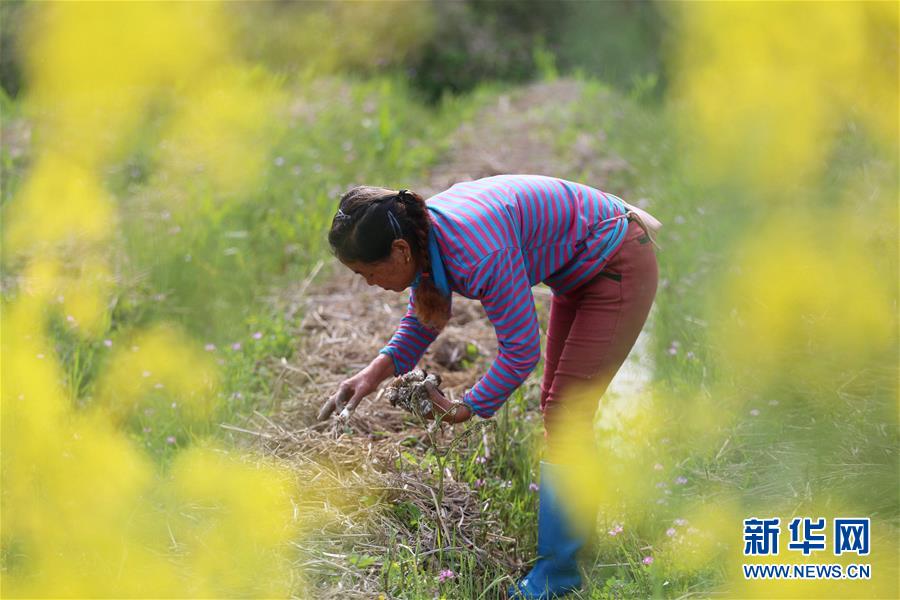 3月29日,贵州省锦屏县敦寨镇亮司村村民在采摘大球盖菇。新华社发(杨晓海 摄)