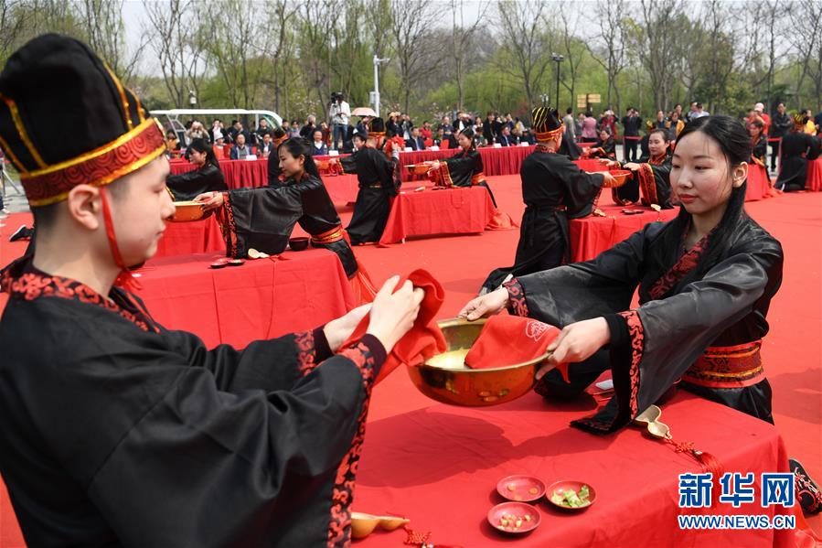 3月30日,新人们在参加汉式集体婚礼。新华社记者 张端 摄