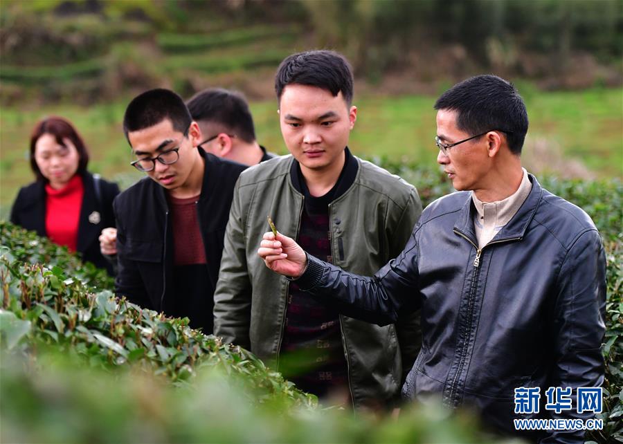 在福建省武夷山市星村镇,科技特派员刘国英(前)给学生们讲解茶叶知识(3月26日摄)。新华社记者 魏培全 摄