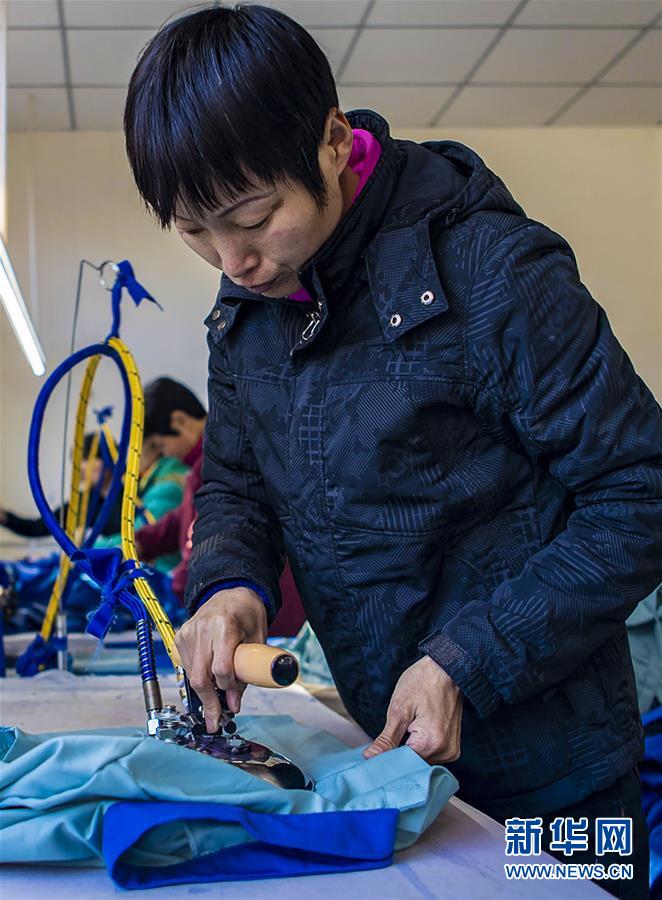 3月30日,工人在武邑县武邑镇一家服装企业“扶贫工坊”加工服装。新华社记者 李晓果 摄